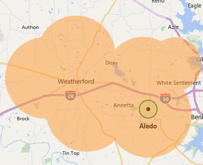 By using the latest wireless technology, Aledo BroadBand is able to offer high-speed Internet service to customers in Parker county. With some exceptions, this covers the entire Aledo area, the Anettas, Willow Park, Hudson Oaks, west Fort Worth, Weatherford, parts of Azle, and more.
